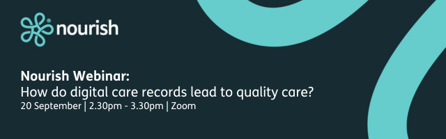 Join leading digital care records platform Nourish on Wednesday 20th September at 2.30pm for a webinar to discuss the impact of digital transformation on quality care.
